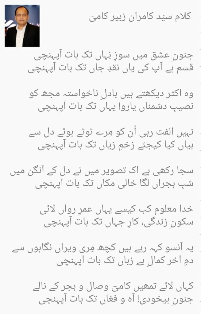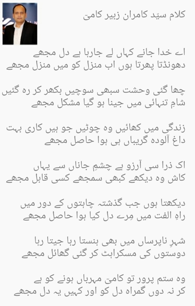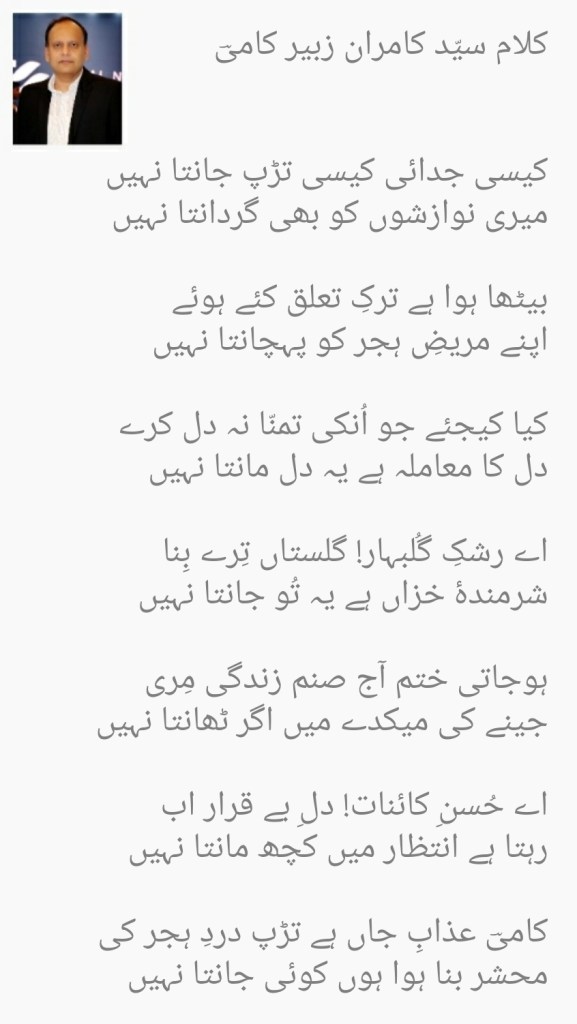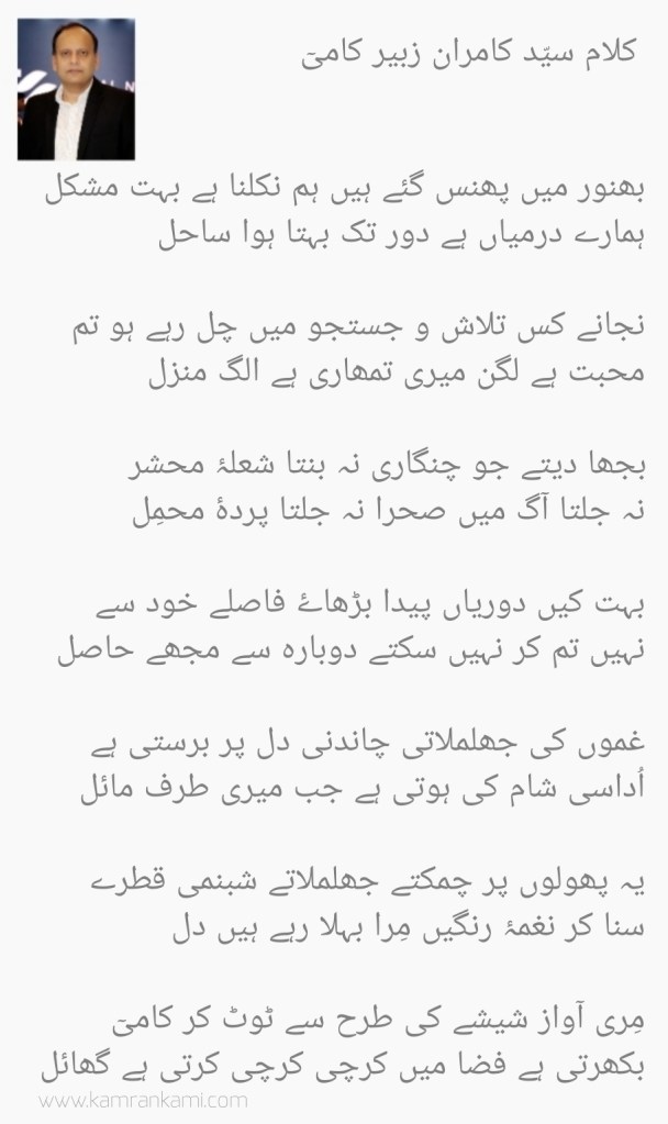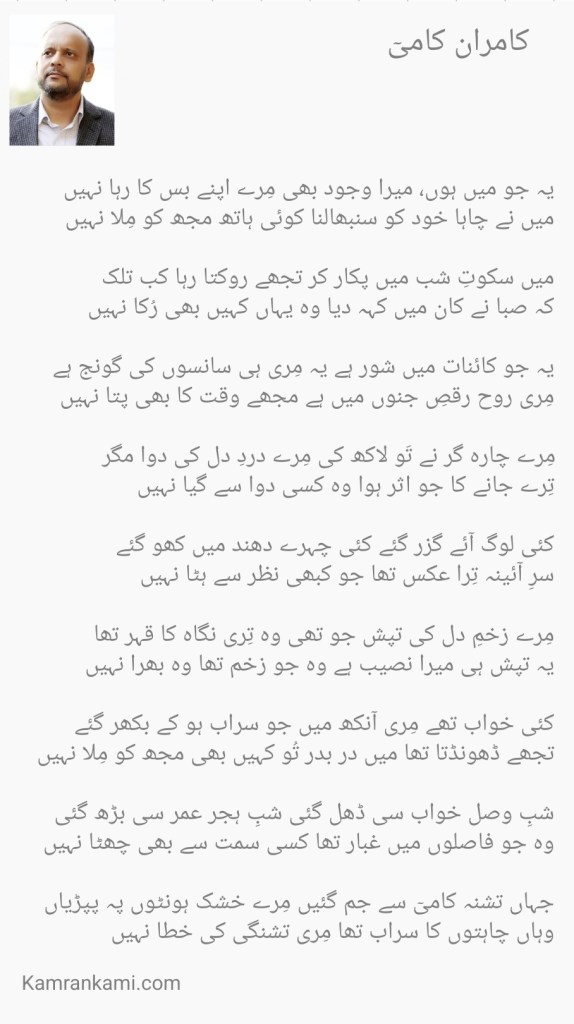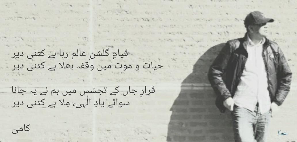 Life has been a journey of love, loss, heartbreak for Kami. Urdu shayari helps express these emotions and he finds solace in it. Some of his work is on display below.